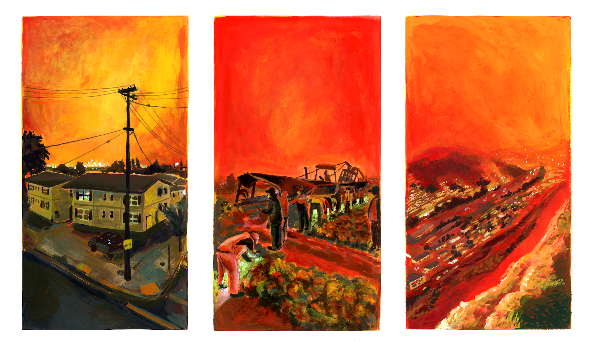 Apocalypse Now: a series of paintings reflecting on the 2020 California wildfires, with sale proceeds going to agricultural worker relief.