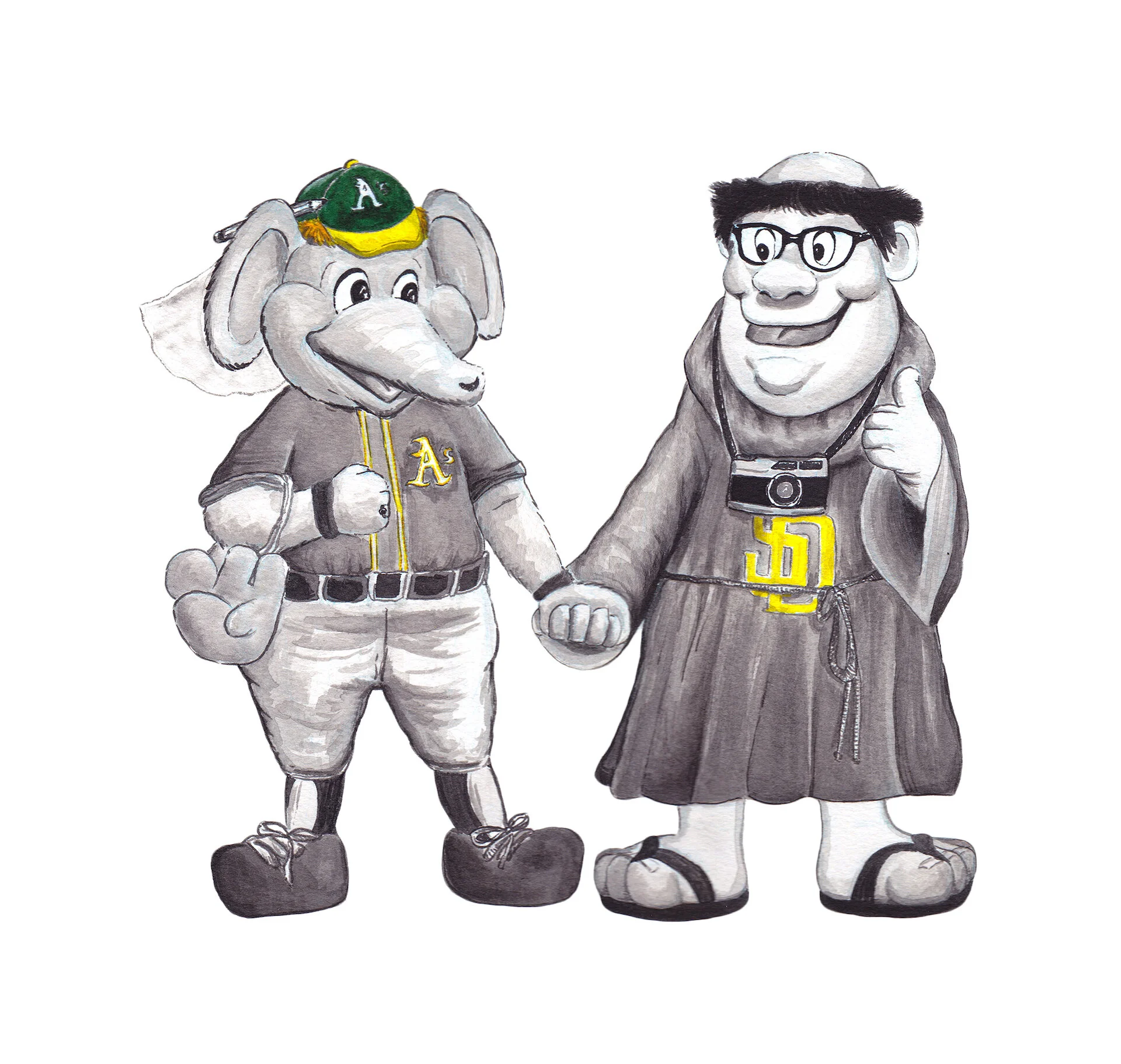 Stomper, Gina edition, reflects her love for boxing and teaching; Swinging Friar, Tom edition, wears his trademark glasses and camera.